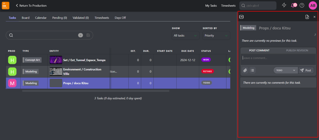Pour poster une nouvelle version sur Kitsu, je me rends sur My tasks sur Kitsu.
